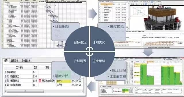 为解决本工程进度编制跟踪难问题,项目通过将进度计划与BIM模型相结合实现“目标设定——模拟优化——跟踪展现——分析调整”的完整进度管控流程,实时跟踪预警进度信息,使项目工期提前了60天,主塔标准层施工平均4.5天一层,预估节约成本1200万以上。