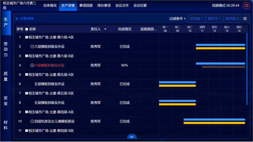 直接使用BIM项目管理平台进行数字周例会,一周工作的全部内容实际完成情况,内容丰富。
