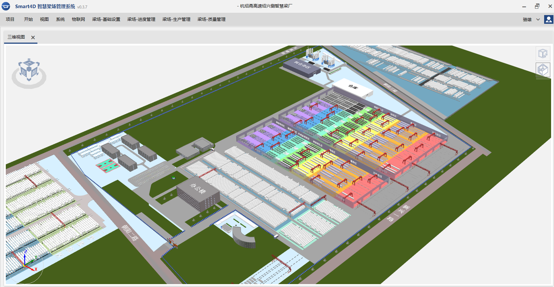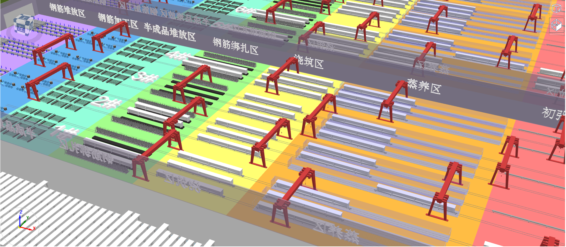 通过三维场布模型对梁场的场区设置、设备配置、生产工序进行综合展示。