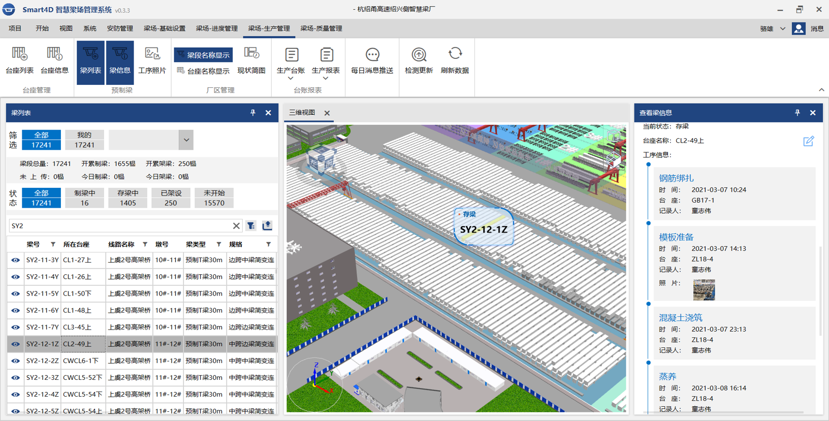 随时了解现场制存梁数量统计;