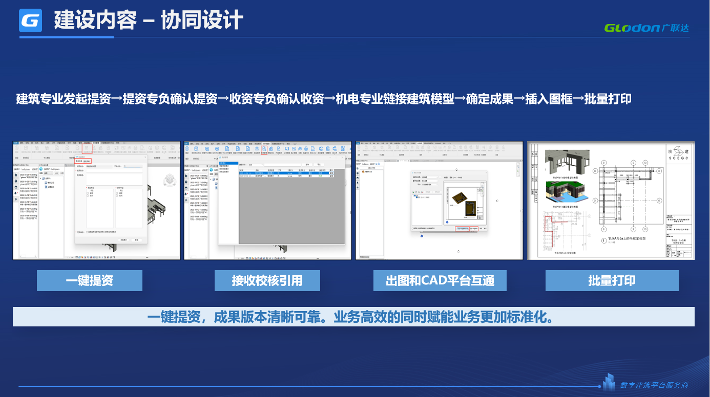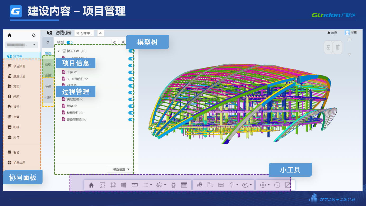 平台给项目管理者提供了多项基于二三维成果孵化的项目管理功能,包括项目策划、任务管理、提资管理、线上校审、项目看板、基于过程成果的在线查看和沟通协同等。