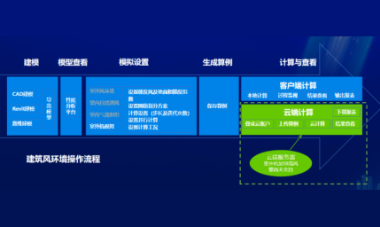 整个分析模拟流程,从最初的CAD建模,到模型导出,室外机录入和布置,形成初步的模拟准备条件,再根据方案,设置模拟参数,保存算例进行计算,通过室外机切面功能生成关键位置切面云图。