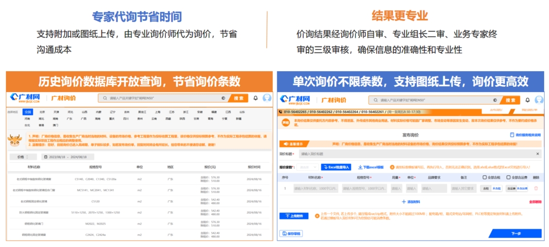非标定制类产品询价难度大,供应商配合度低,报价水平参差不齐,广材网专业询价团队,解决材料价格不好找、询价难度大问题。
