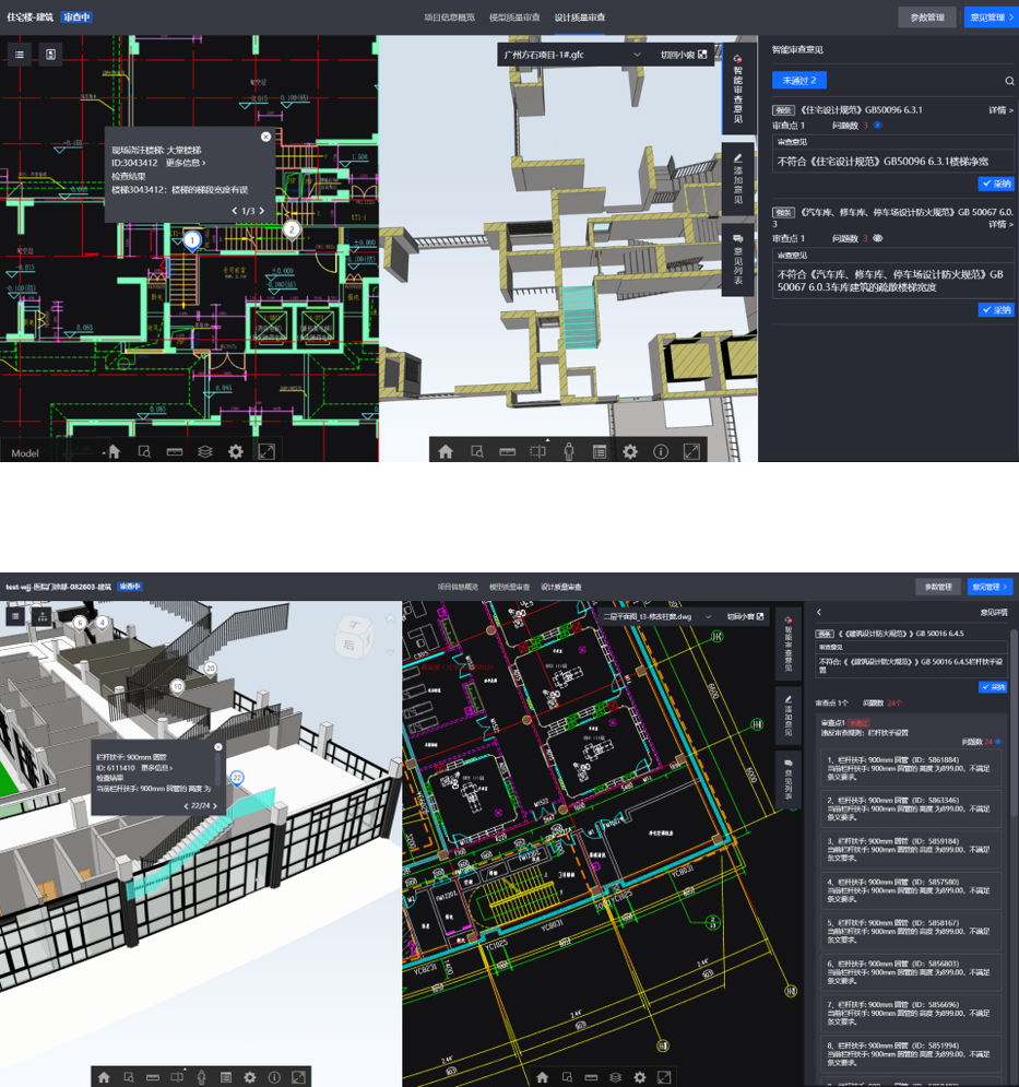 智能审查方式保障BIM模型质量和BIM设计质量,同时通过兼容开放的数据格式推动全周期多场景BIM应用,促进BIM源头数据质量的提升。