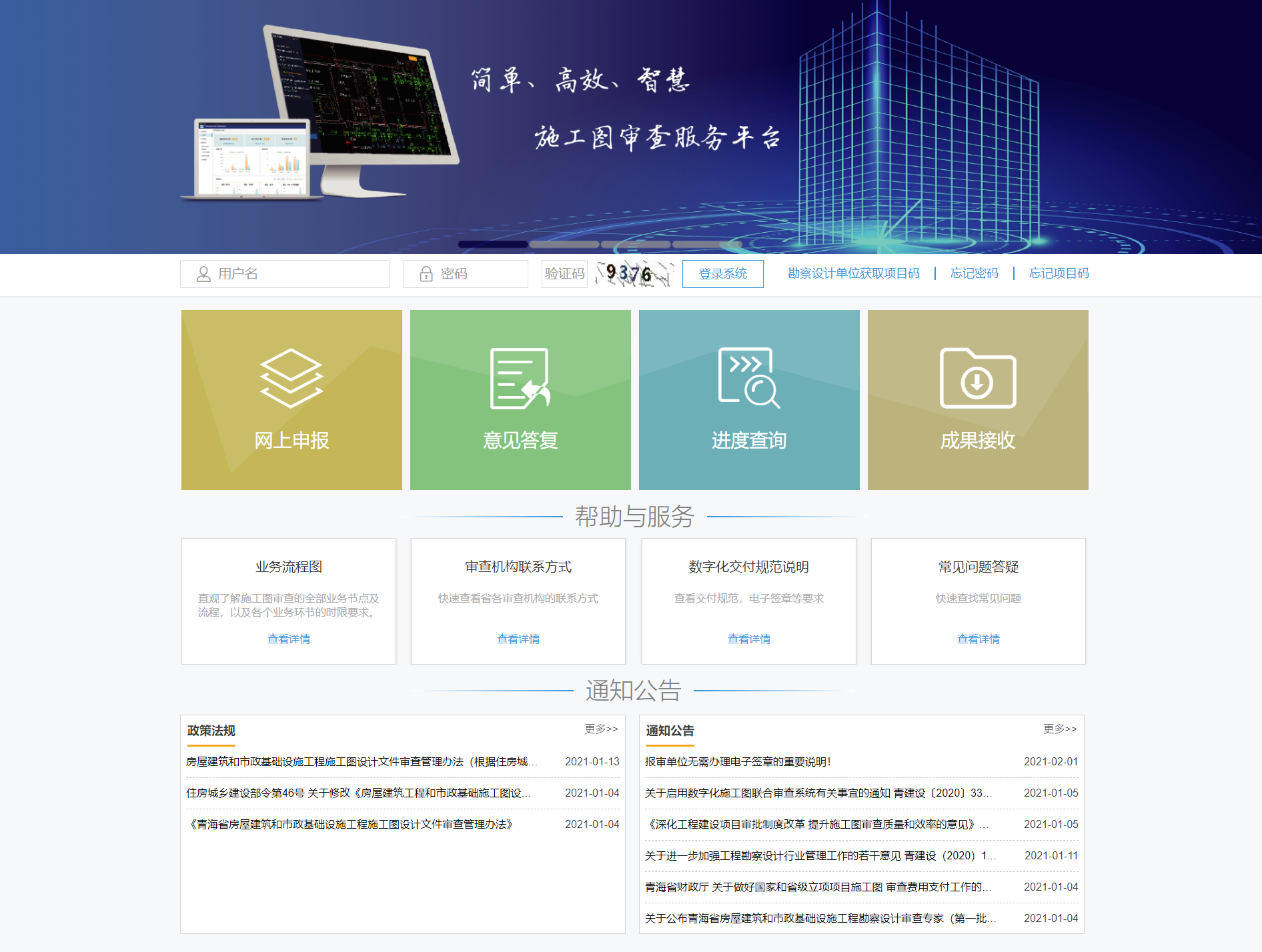 提供统一、规范、完整的施工图技术审查及工作管理平台,构建了先申报后选择、 机选摇号、同体回避、工作量管控、申诉评价等全面的机构遴选管控模块,为政府买服务方式开展施工图审查工作提供了规范、便捷、有效的系统支撑。能够与报建平台无缝对接,实现行政审批与技术审查的全过程打通;提升审批和监管的及时性、有效性、准确性,为进一步压缩工程建设项目审批总时限提供有效技术支撑。