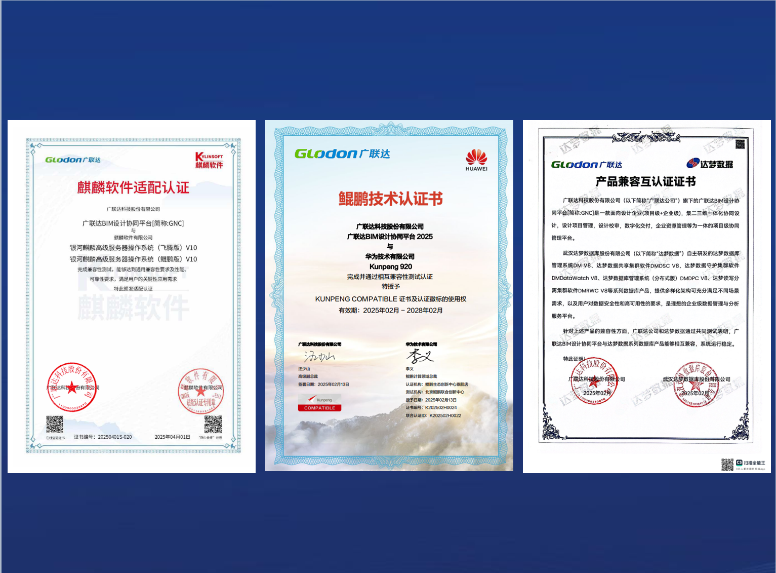 信创支持: 麒麟操作系统,鲲鹏芯片,达梦数据库,全部通过认证