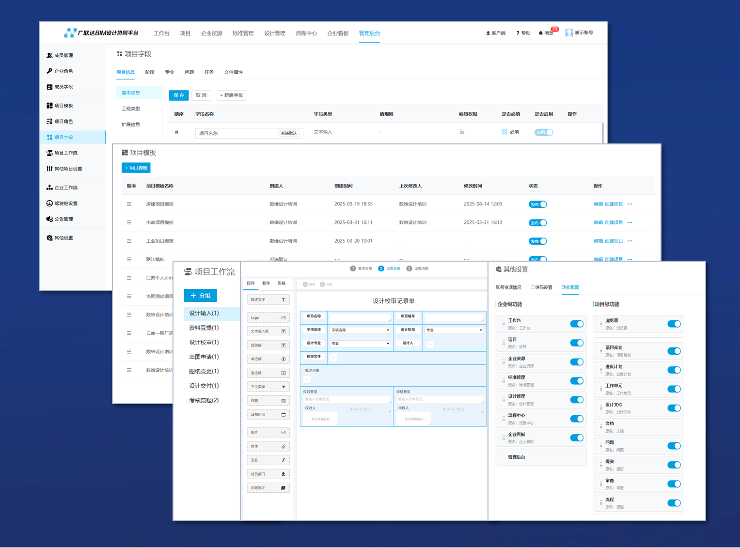可自定义流程、表单、应用、项目信息、文档目录、文件命名、校审报告、问题字段、用户界面等,大大降低企业未来维护及二开定制成本。