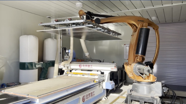 采用智能机器人与数控设备相互配合,全面替代人工。基于管理控制单元下发的加工指令,一天10个小时可加工模板800-1000平米。对于异形模板,效率更可提升几十倍,加工误差在0.5mm以内,大大减少质量问题。