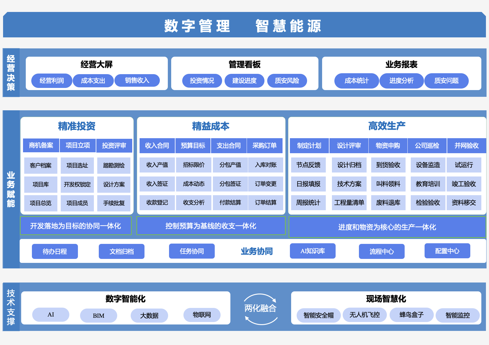 · 业务场景:围绕精准投资、精益成本、高效生产,实现开发、收支、生产一体化,为一线作业提供赋能