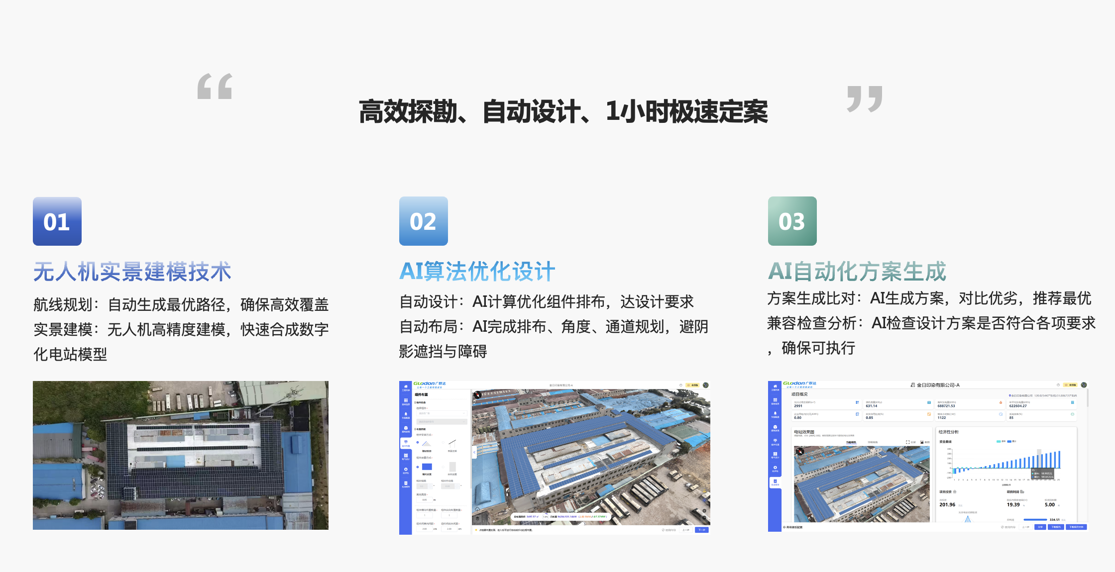 方案特点:AI+无人机结束结合的全自动设计平台